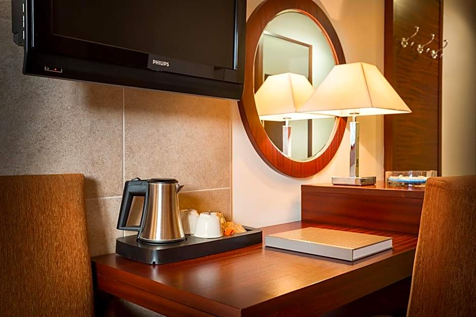 Elegant and spacious bedrooms, 26 - 29 m2, with double or twin bed and a sofa bed which can accommodate a third person. Rooms are equipped with flat-screen TV and rooms for nonsmokers are available upon request. A beautiful view on a quiet, green park side can be enjoyed from comfortable sitting furniture from a spacious balcony.
